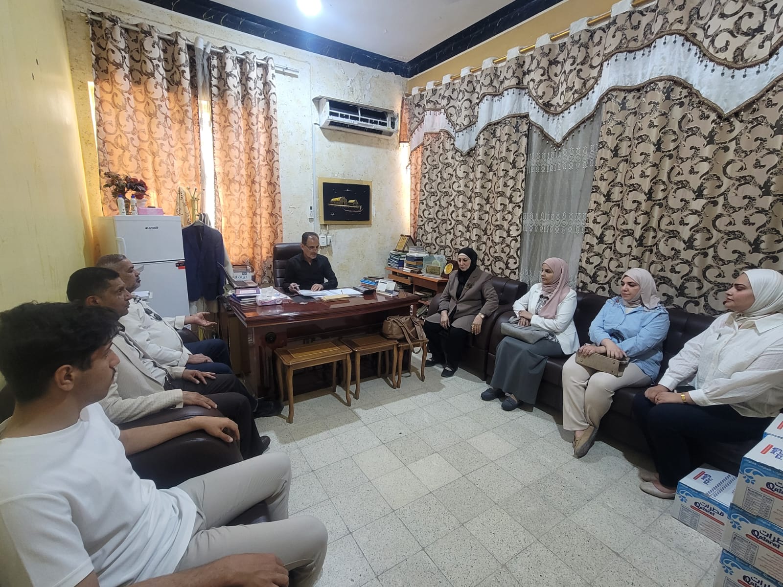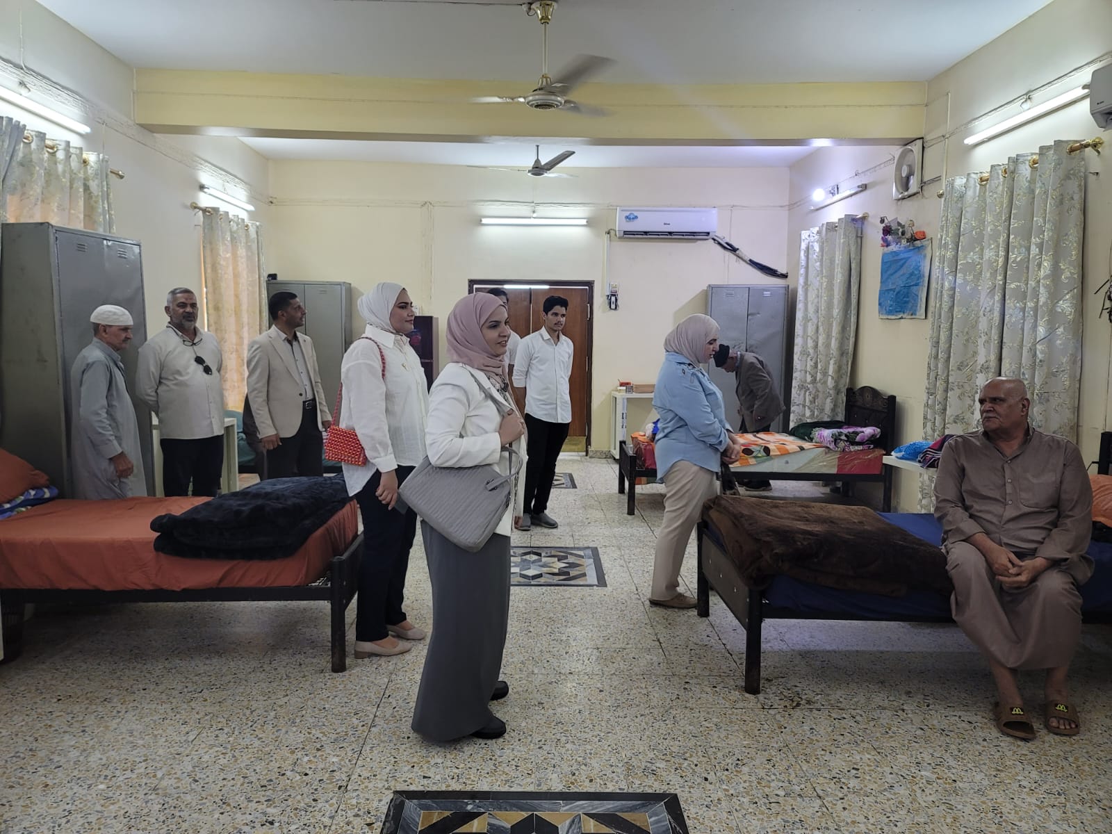 As part of voluntary community service activities aimed at enhancing positive participation in social solidarity, the College of Pharmacy, in collaboration with the Student Activities Unit and the Quality Assurance Division, organized a visit to the Elderly Care Home in Basrah. The visit was sponsored by the Dean of the College, Assistant Professor Dr. Jubran Khalil Hassan, with the participation of several faculty members and students.