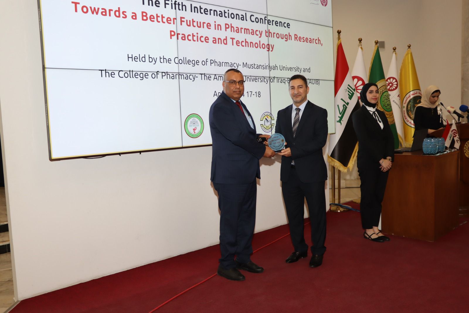 إيماناً بأهمية مواكبة التطور العالمي، شارك وفد الكلية برئاسة السيد العميد في مؤتمر علمي مشترك مع الجامعة الأمريكية في بغداد لاستعراض أحدث الابتكارات في مجالات البحث الصيدلاني والتصنيع الدوائي.