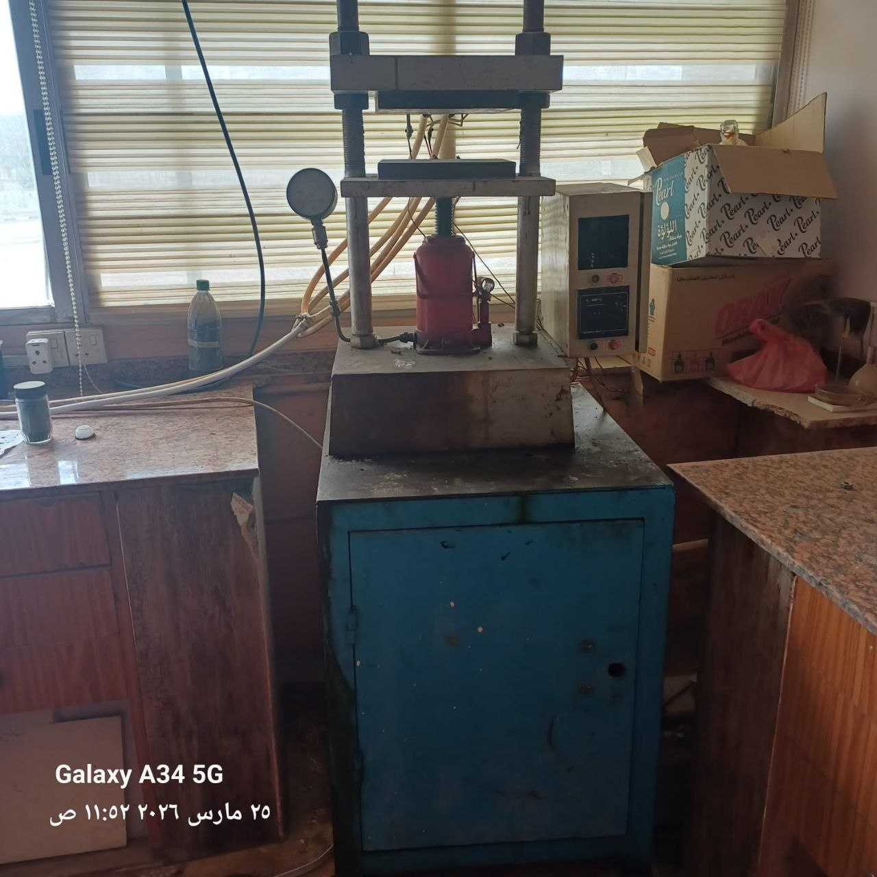 تصليح جهاز المكبس الحراري في مركز ابحاث البوليمر.