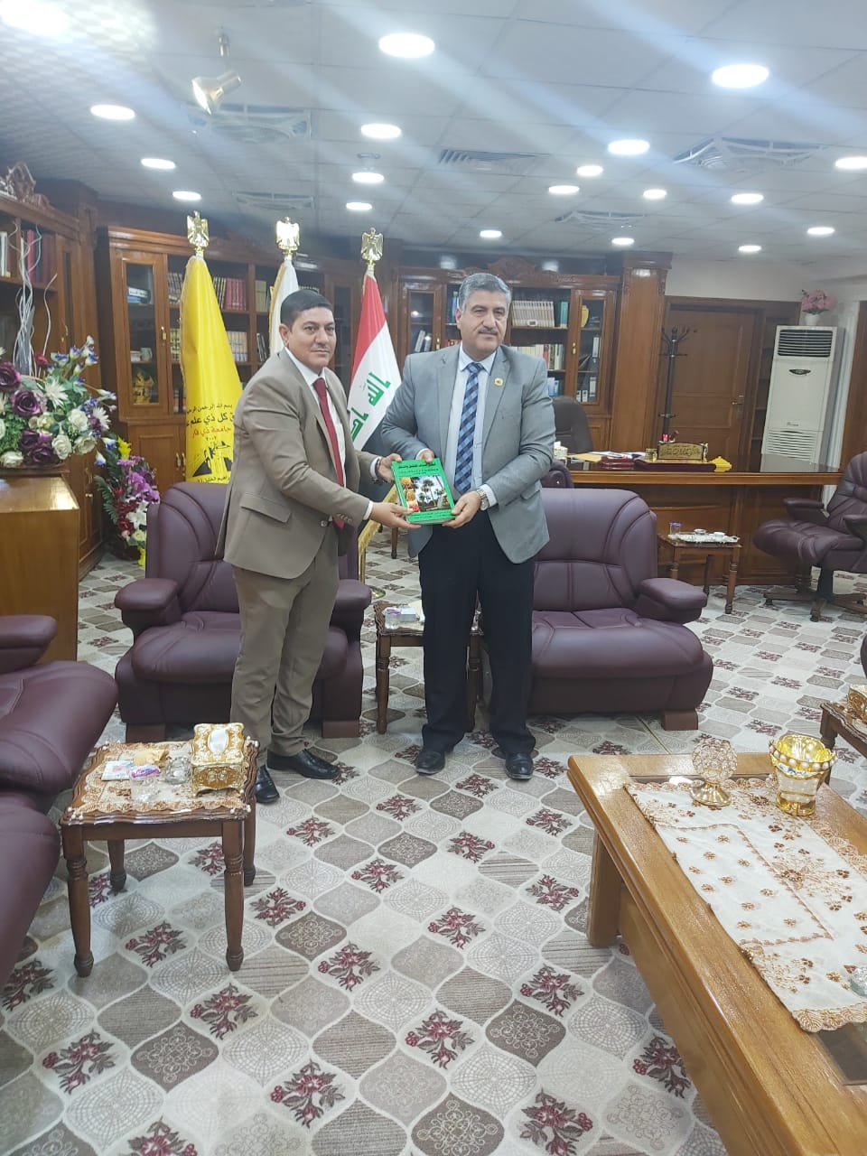 تنفيدا لتوجيهات الأستاد الدكتور سعد شاهين المحترم بأهداء نسخة من أصدارات مديرية دار الكتب للطباعة والنشر الى كافة جامعات العراق ,كلف الأستاد الكتور ياسين حبيب عزال مدير المديرية المحترم الدكتور فيصل غازي مدير قسم المتابعة في رئاسة جامعة البصرة بأهداء السيد رئيس جامعة دي قار الأستاد الدكتور يحيى عبد الرضا عباس نسخه من كتاب أطلس أصناف النخيل والتمور .ت