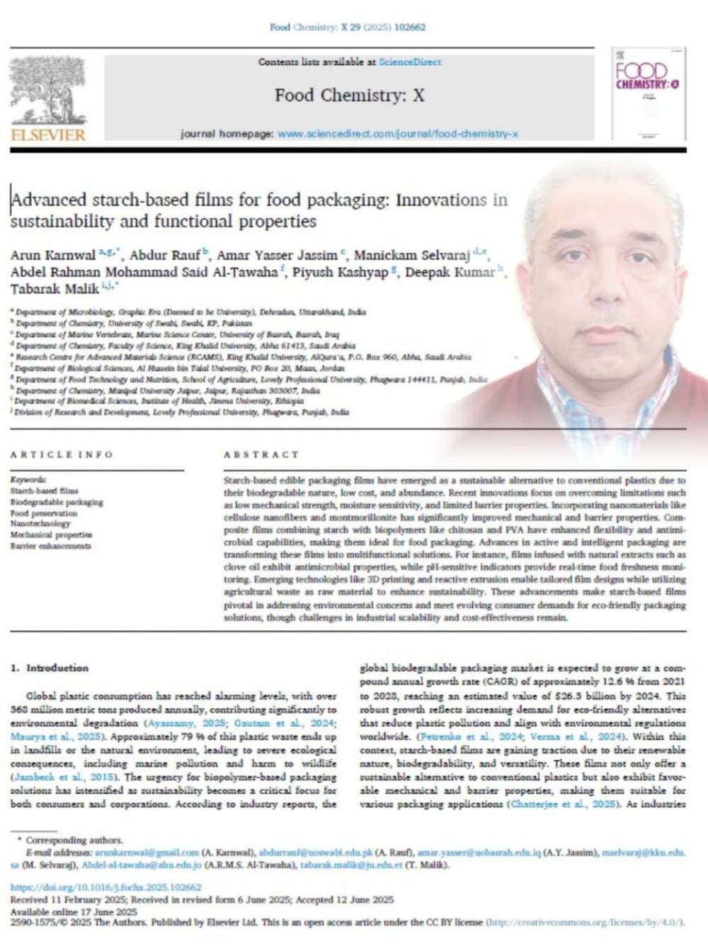 تدريسي في جامعة البصرة ينشر مقالاً علميا ًفي مجلة الكيمياء الحيوية ضمن مستوعبي سكوباس وكلارفيت ...