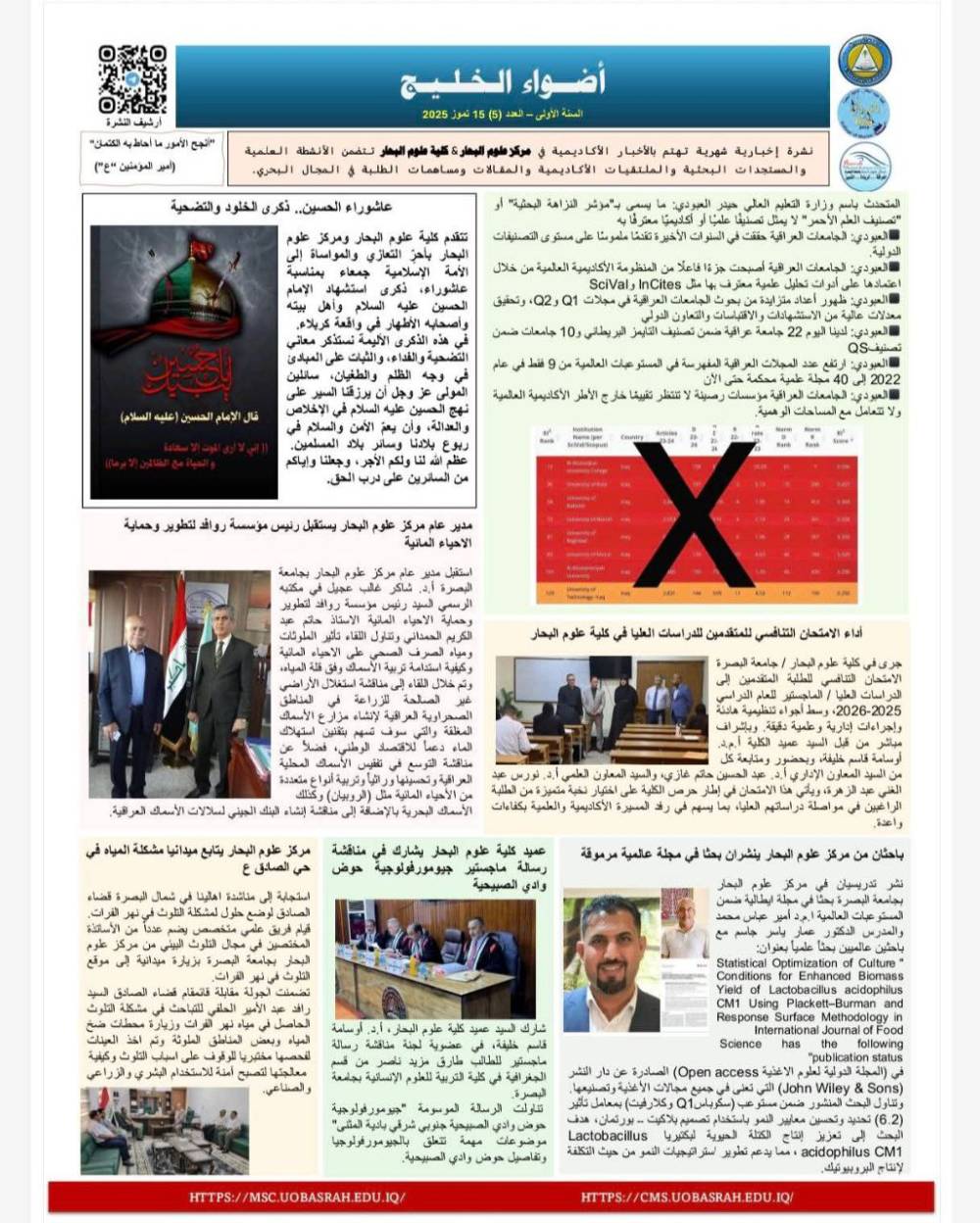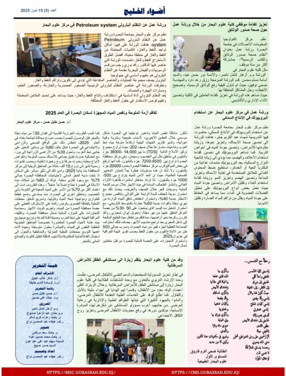 جامعة البصرة تصدر العدد الخامس من نشرة أضواء الخليج...