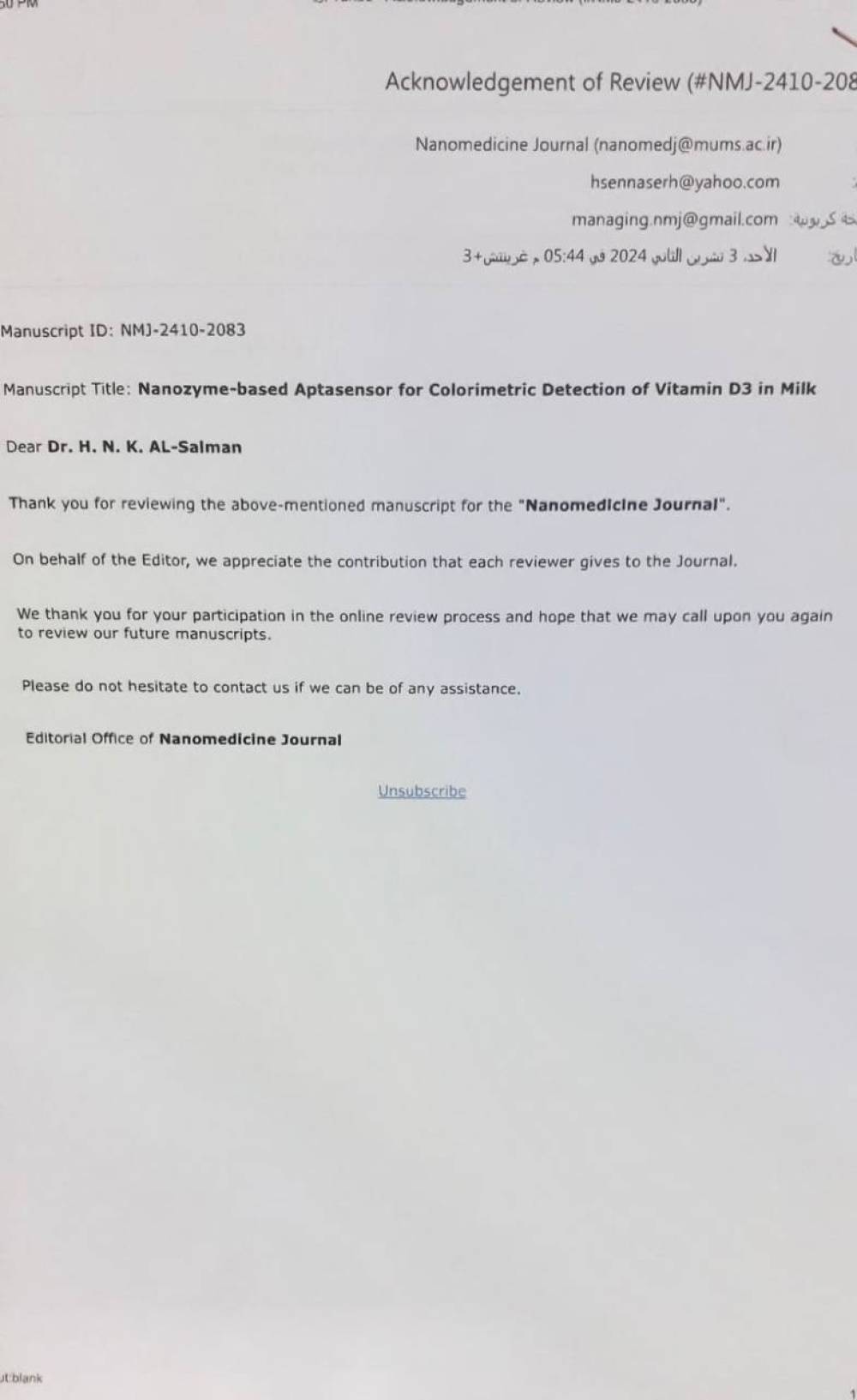 اختيار تدريسي في جامعــة البصــرة مقيماً علمياً في مجلة عالمية...