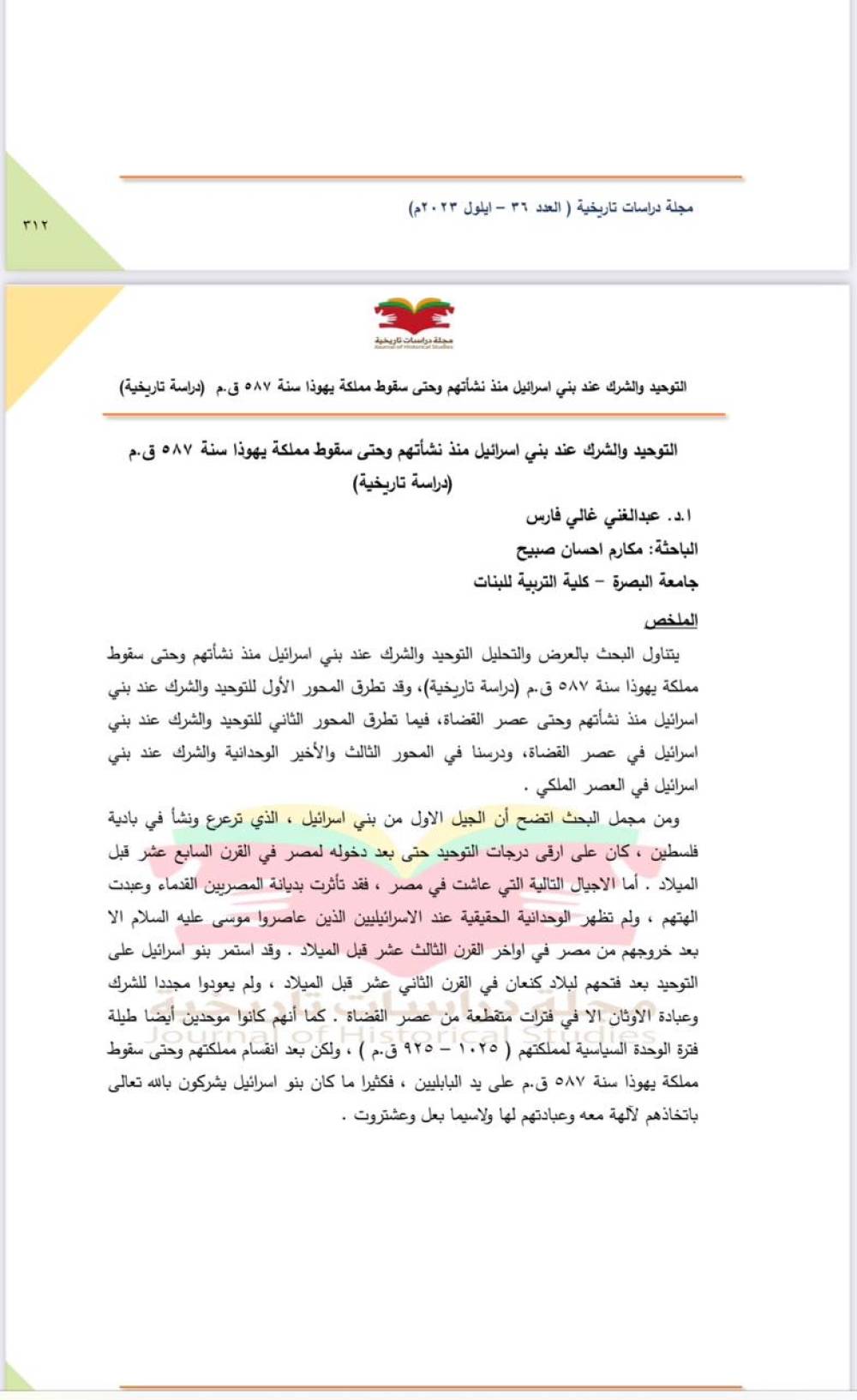 دراسة علمية في جامعة البصرة عن التوحيد والشرك عند بني اسرائيل...