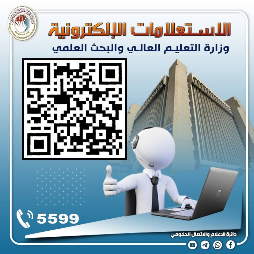 الاستعلامات الإلكترونية خدمة مخصصة لاستقبال الاستفسارات ومتابعة الطلبات الخاصة بالمواطنين والموظفين وطلب مقابلة المسؤولين في وزارة التعليم العالي والبحث العلمي*...