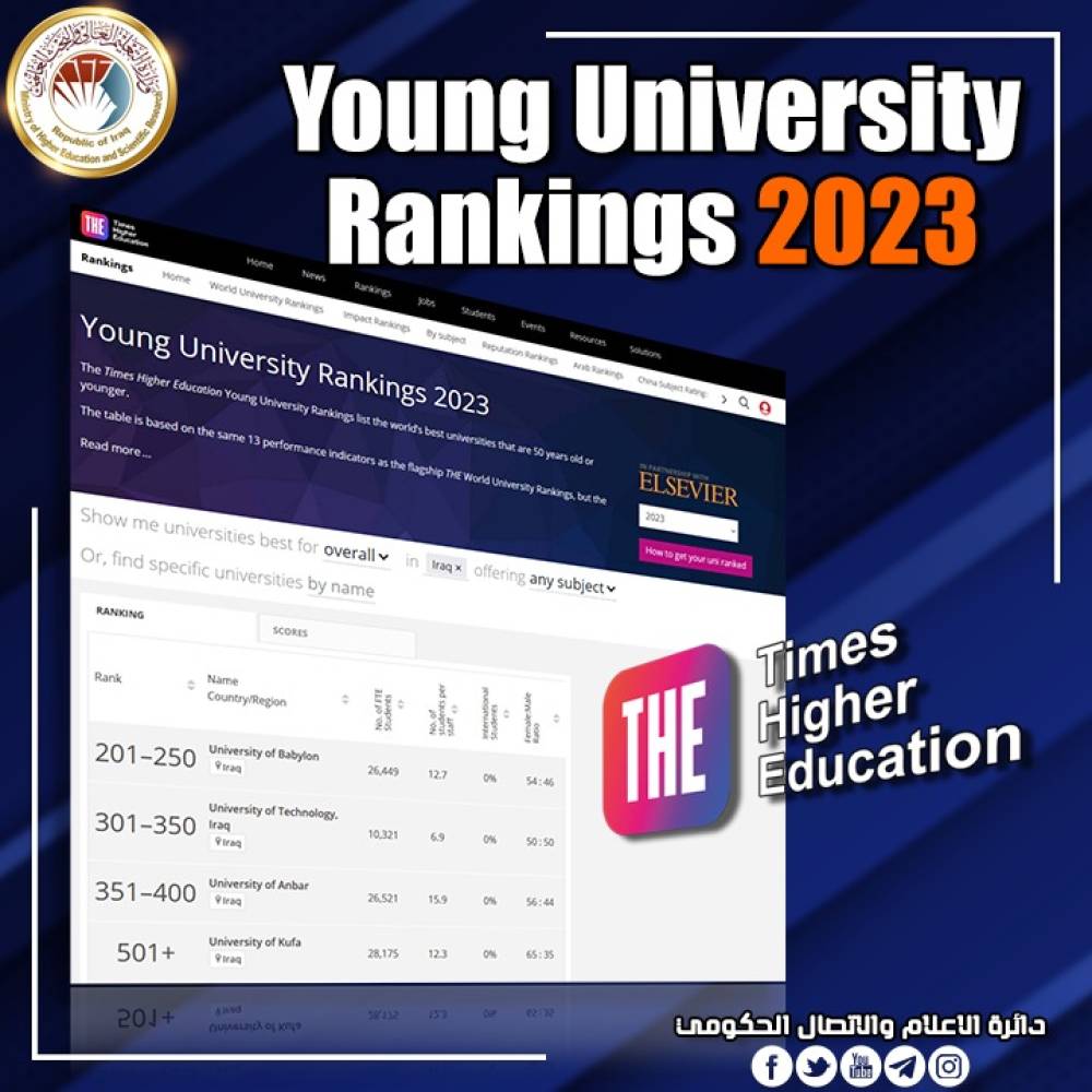 جامعات عراقية تحصد مراكز تنافسية في تصنيف The Times Higher Education Young University Rankings*...