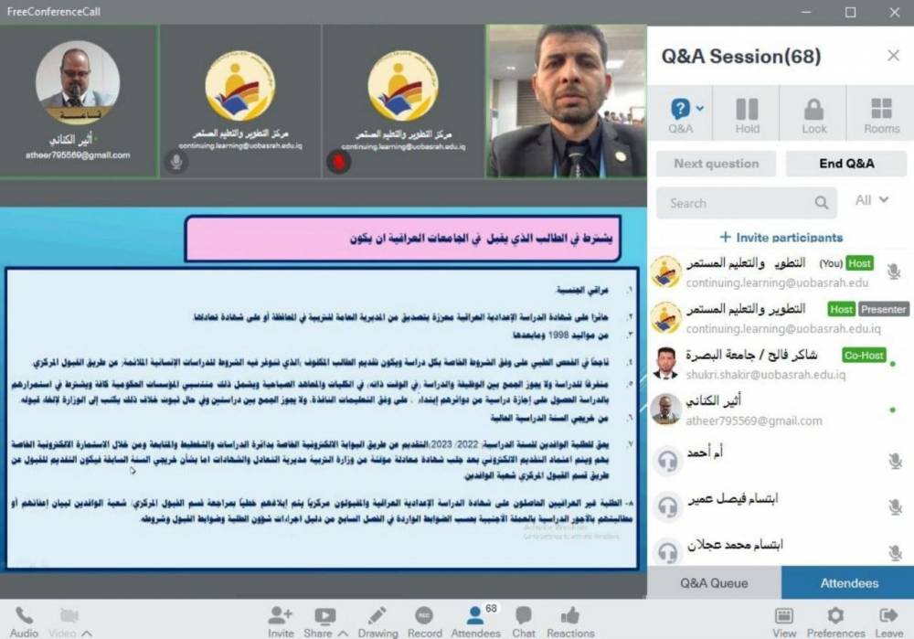 جامعة البصرة تنظم ورشة الكترونية عن مهارات ادارة الازمات...