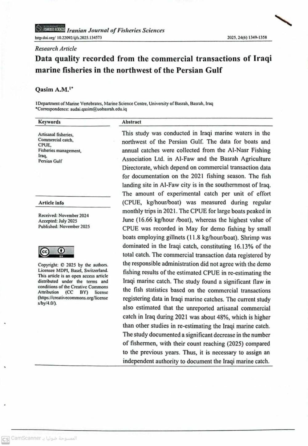 جامعة البصرة تنشر بحثا في مجلة ايرانية ضمن مستوعبات كلارفيت وسكوباس...