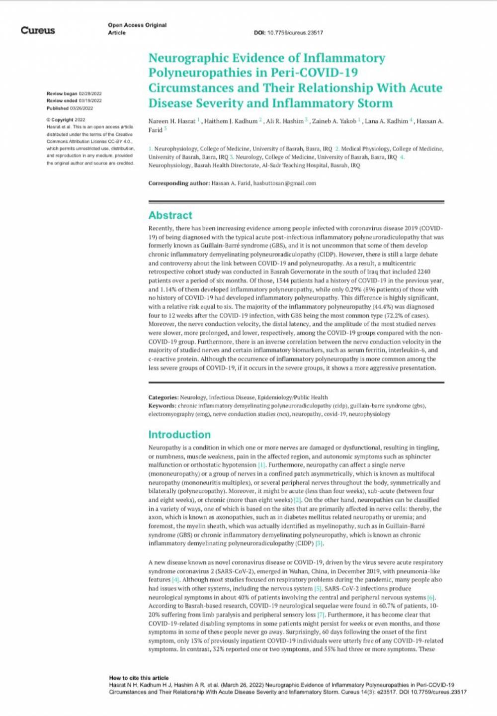 فريق بحثي في جامعة البصرة ينشر بحثاً في مجلة عالمية عن اعتلال الاعصاب المحيطة في الفسلجة العصبية...