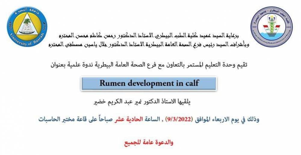 جامعة البصرة تنظم حلقة نقاشية عن تطور الكرش في العجول...