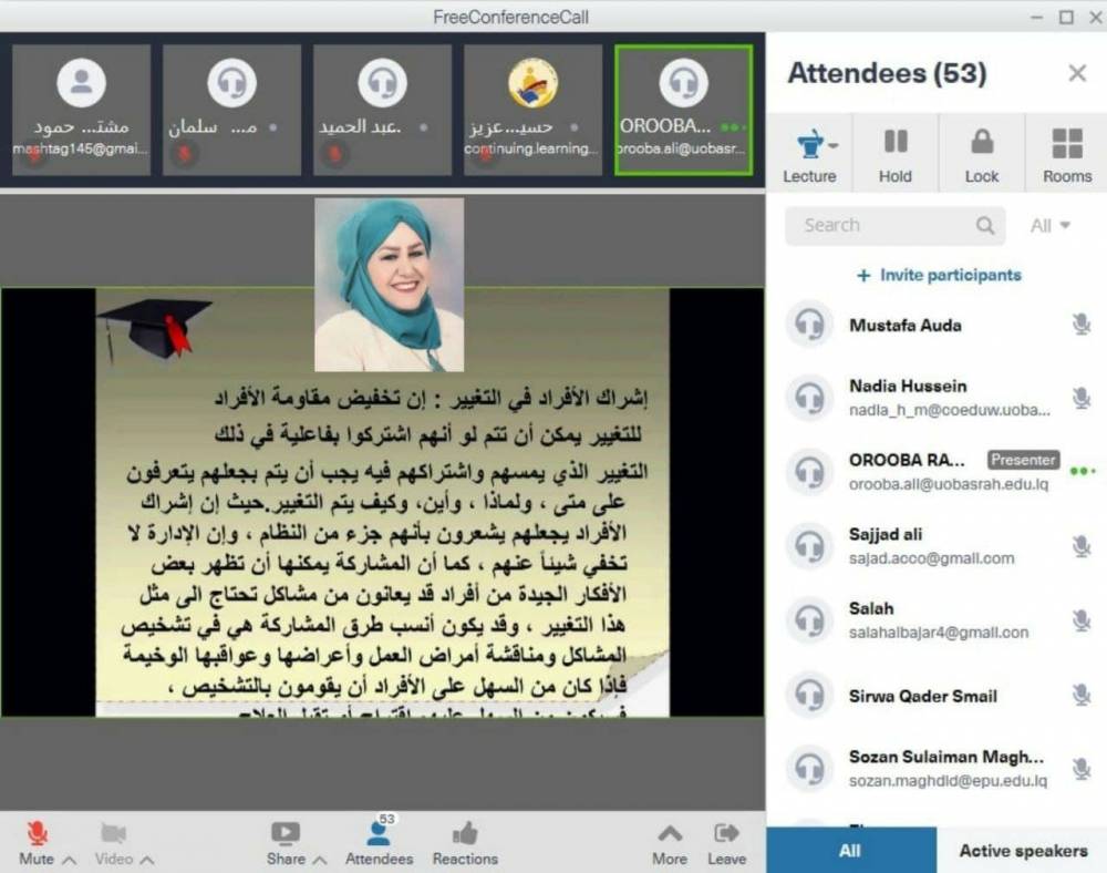جامعة البصــــرة تنظم ورشة عـــــن ادارة التغيير...
