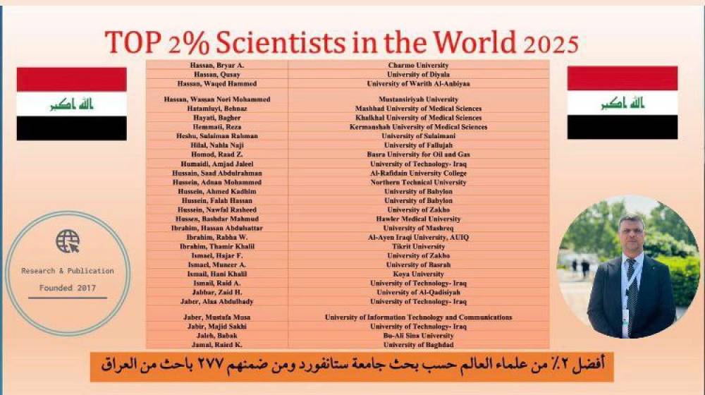 تدريسي في جامعة البصرة ضمن قائمة أفضل العلماء في العال...