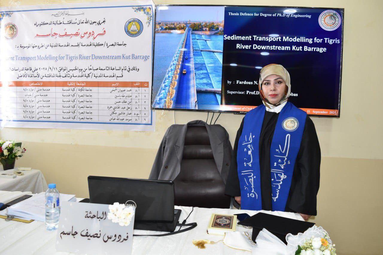 بحثت اطروحة دكتوراه في كلية الهندسة بجامعة البصرة النمذجة العددية للجريان وانتقال الرسوبيات في نهر دجلة وتقييم تدابير السيطرة على تآكل ضفاف النهر.