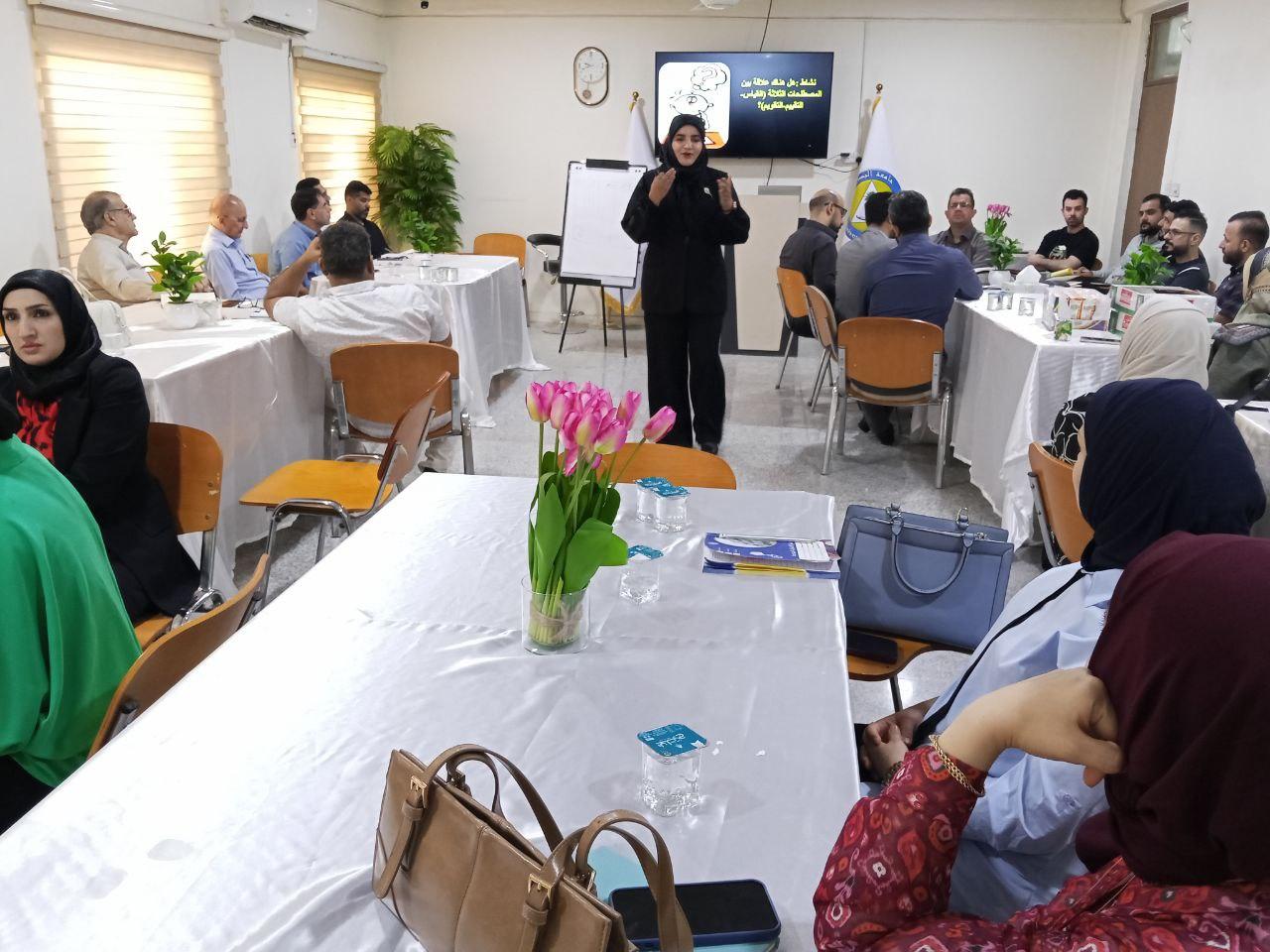 وتضمنت المحاضرة التي قدمها الدكتور قتيبة مسلم داوود والدكتورة خديجة سامي ماضي ، تعريف ماهو القياس والتقويم والتقييم واغراض القياس و انواع التقويم و الخارطة الامتحانية مع الامثلة والمهام ومعامل السهولة و الصعوبة.