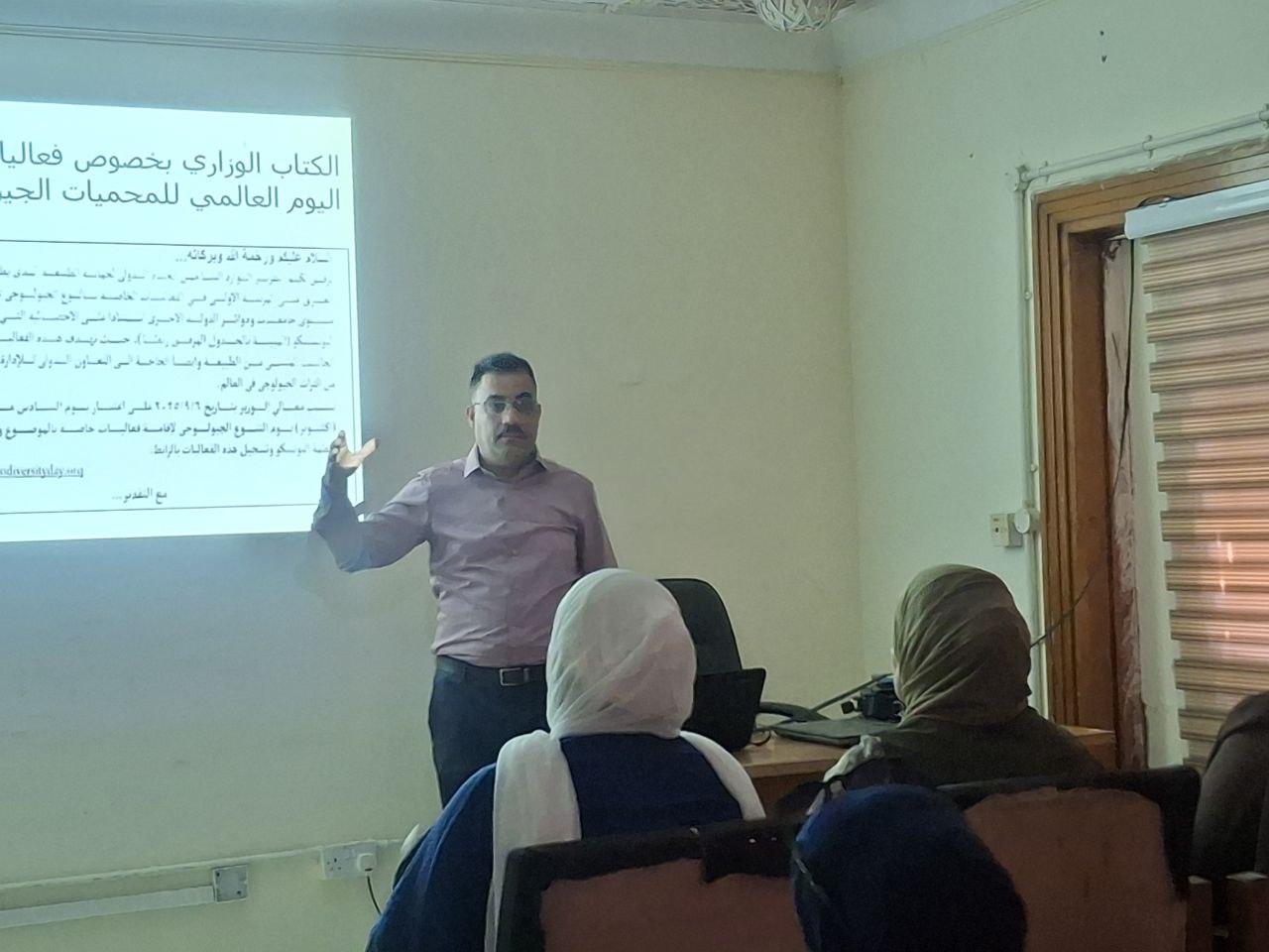 قدّم المحاضرة الدكتور باسم حميد سلطان التدريسي بكلية العلوم وعضو مجموعة خبراء المحميات الجيولوجية في العراق، حيث تناول خلالها موضوع المحميات الجيولوجية والتنوع الجيولوجي (Geological Preserves & Geodiversity)، مسلطاً الضوء على محمية جبل سنام في البصرة وتاريخ وجودها التقريبي وانواع الصخور الموجودة فيها . مشددا على أهمية الحفاظ على الموروث الجيولوجي والترويج للسياحة العلمية والبيئية.