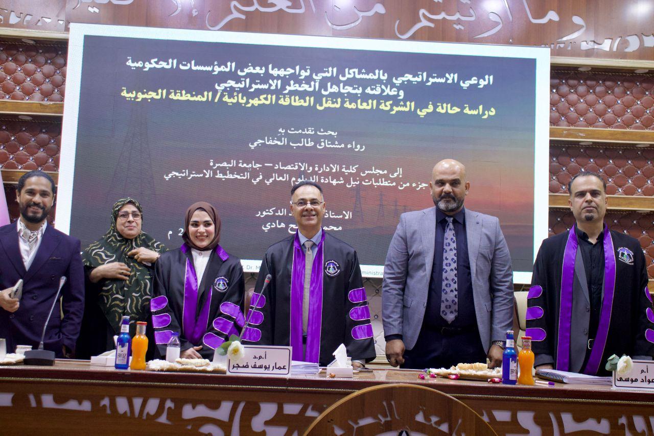 بحثت كلية الإدارة والاقتصاد في جامعة البصرة بحث دبلوم بعنوان “الوعي الاستراتيجي بالمشكلات التي تواجه بعض المؤسسات الحكومية وعلاقته بتجاهل الخطر الاستراتيجي”.
