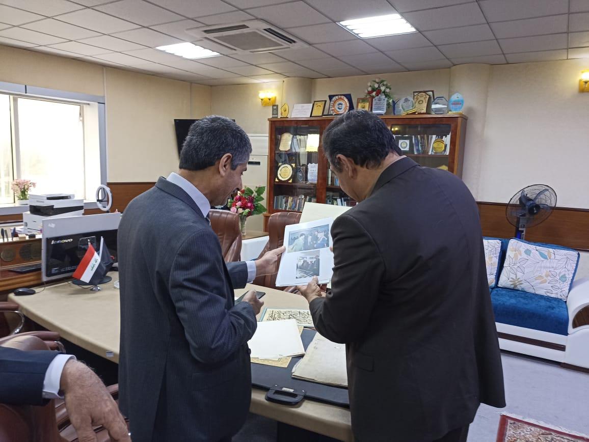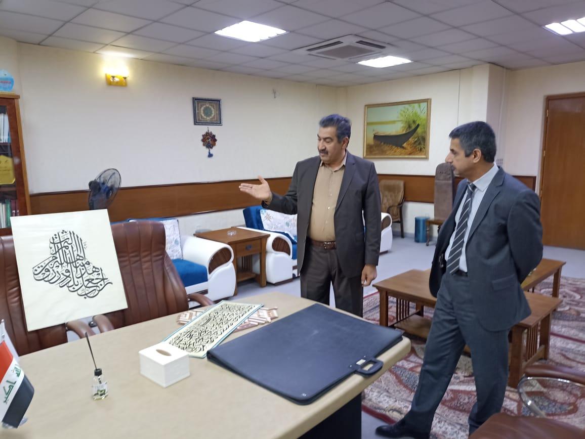 استقبل رئيس جامعة البصرة الدكتور سعد شاهين حمادي مدرس الخط العربي في كلية الفنون الجميلة بجامعة بغداد عبد الكريم عبد ثابت.