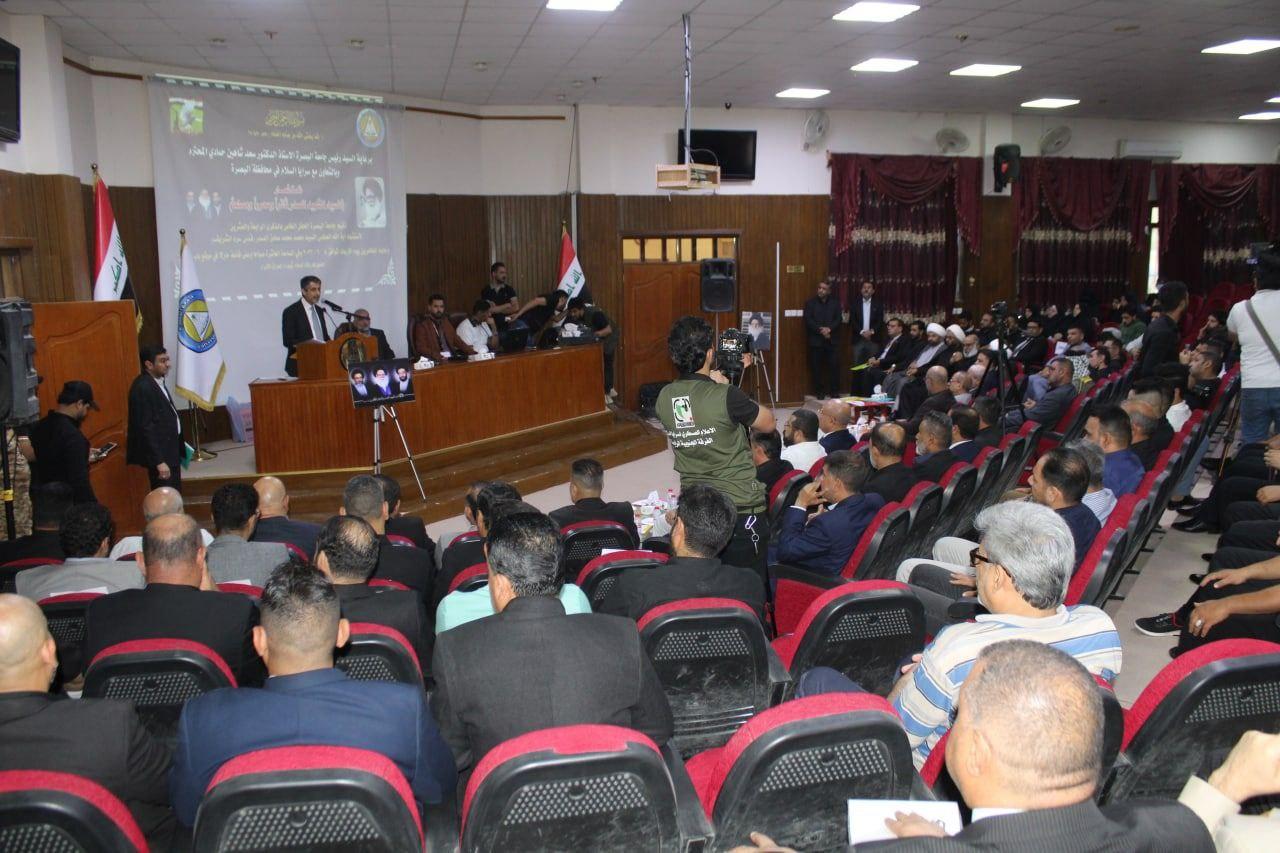 نظمت جامعة البصرة بالتعاون مع سرايا السلام في البصرة محفلاً تأبينيا تخليدا ً للذكرى الـ (24) لاستشهاد السيد محمد محمد صادق الصدر ( قدس) ونجليه الطاهرين، وقال رئيس الجامعة الدكتور سعد شاهين حمادي في كلمة حفل الافتتاح، ان " إحياءنا لذكرى استشهاد السيد محمد الصدر بعد كل تلك السنوات لهو دليل جلي على استمرارية خطه المبارك وان جهوده لم تذهب مع الرياح وان سيرته الجهادية والعلمية يمكن ان تدون ضمن سير المصلحين في التاريخ لأهليته الفارقة وقدرته الكبيرة على اعادة صياغة تاريخ الامة الاسلامية التي أريد لها ان تزول في تلك الحقبة علميا ً وعقائديا ً ودينياً " .