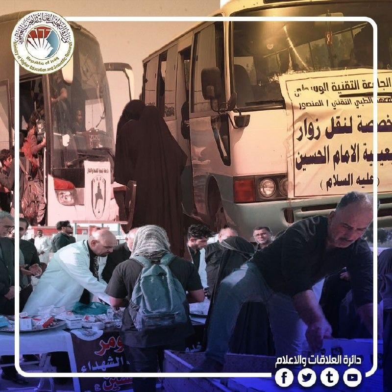 تعظيما لشعائر الله وإسهاما ودعما للمسيرة المليونية لحشود الزائرين المتوجهين الى كربلاء المقدسة إحياء لزيارة أربعينية الإمام الحسين عليه السلام وتحقيقا لمهامها في خدمة المجتمع استنفرت وزارة التعليم العالي والبحث العلمي وجامعاتها ومؤسساتها في عموم العراق إمكاناتها الخدمية والبشرية كافة لتقديم الخدمات اللوجستية والطبية والفنية على طول خارطة الوصول الممتدة من جميع المحافظات الى كربلاء الشهادة والتضحية.