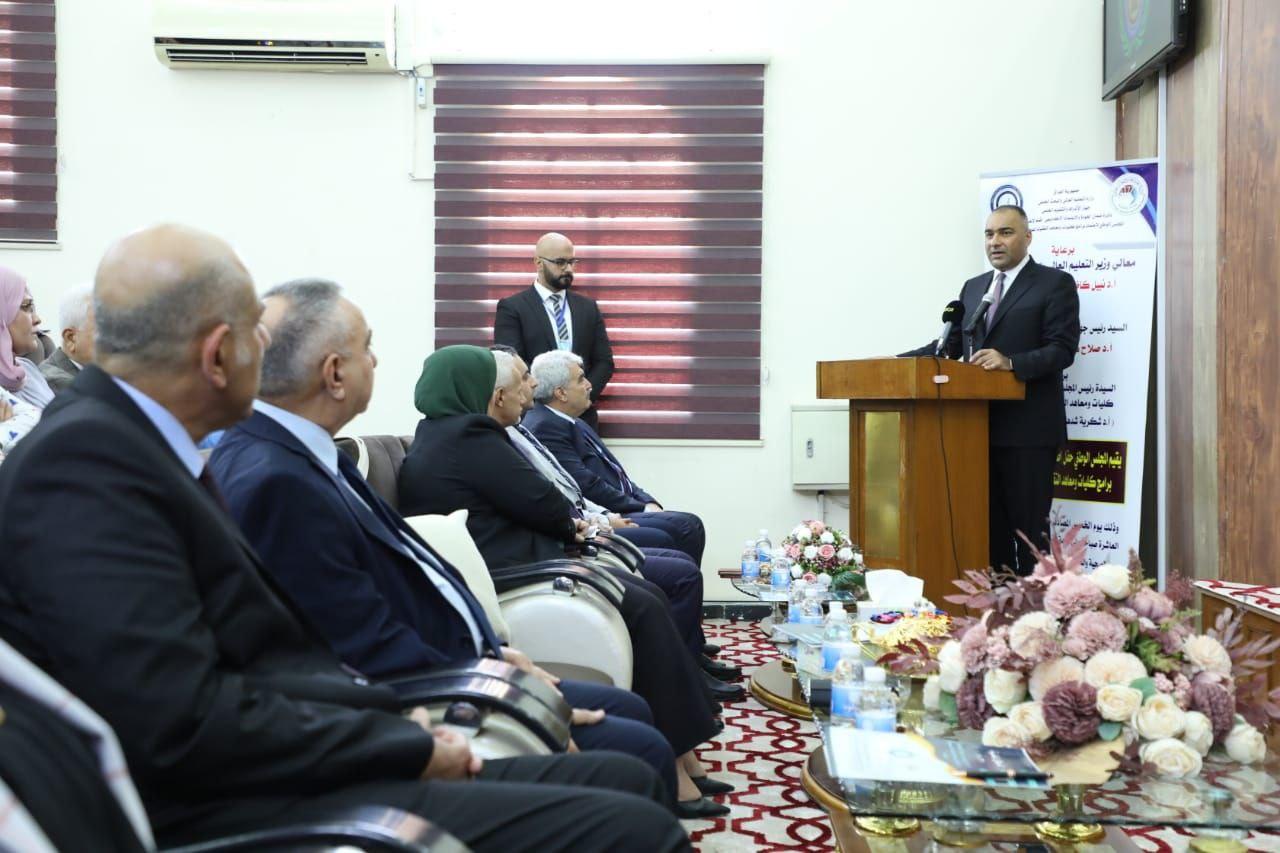 بدورها أوضحت رئيسة المجلس الوطني لاعتماد برامج كليات ومعاهد التقنيات الصحية والطبية الدكتورة شكرية شدهان العكيلي أنّ انجاز ملف المعايير الوطنية لاعتماد كليات ومعاهد التقنية الصحية والطبية جاء بجهود مشتركة من أساتذة ومختصين في المجال التقني وقد اسفرت تلك الجهود باعتماد معايير أساسية ركزت على تحديث المناهج وتطوير المصادر التكنولوجية للمعلومات التقنية مشيرة الى أنّ المجلس يعمل بشكل حثيث على تقديم الدعم للجامعات في الاعتماد البرامجي من أجل الإسهام في جودة المخرجات طبقاً لمتطلبات سوق العمل.