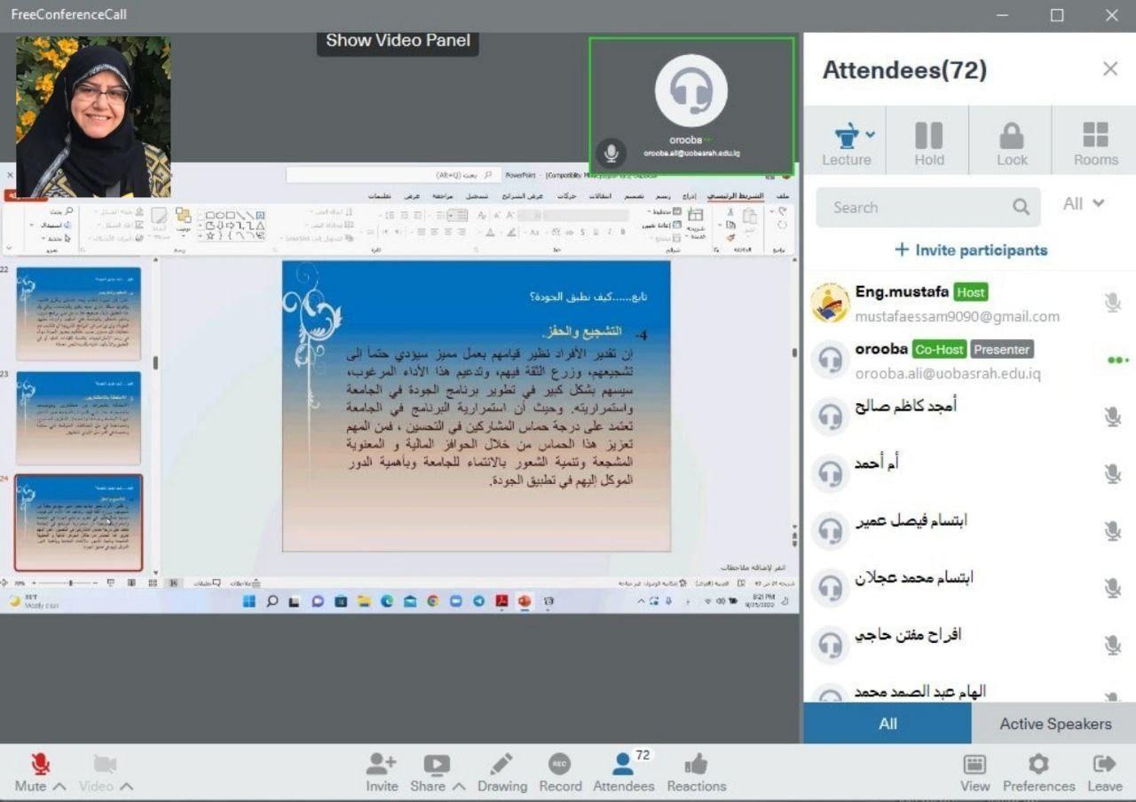 نظم مركز التطوير والتعليم المستمر في جامعة البصرة محاضرة عبر الانترنت عن اساسيات ادارة الجودة الشاملة