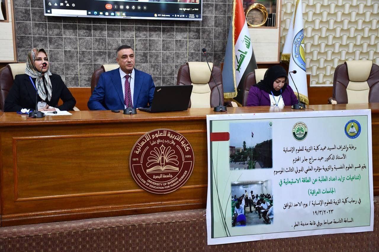 نظمت كلية التربية للعلوم الإنسانية في جامعة البصرة مؤتمرها الدولي المدمج الثالث حول (تداعيات تزايد أعداد الطلبة عن الطاقة الإستيعابية) وتحت شعار ( الرصانة أولاً )
