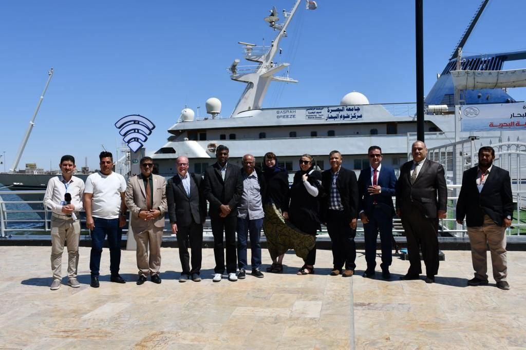 استقبل مدير مركز علوم البحار ومدير قسم العلاقات العامة والاعلام بجامعة البصرة الطاقم الإداري والفني لسفينة (لوغوس هوب) الراسية في رصيف خاص بمجمع القصور الرئاسية على ضفاف شط العرب.