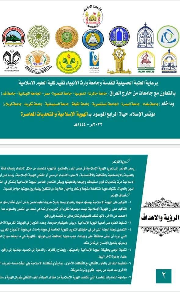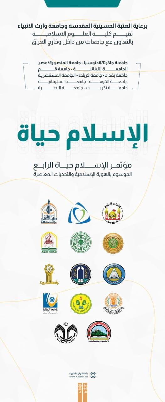 الموتمر الدولي الرابع الذي أقيم في جامعة وارث الأنبياء في مدينة كربلاء المقدسة بمشاركة عدد من التدريسيين من الجامعات العراقية والجامعات العالمية من إيران ومصر وتونس وإندونيسيا ولبنان حيث