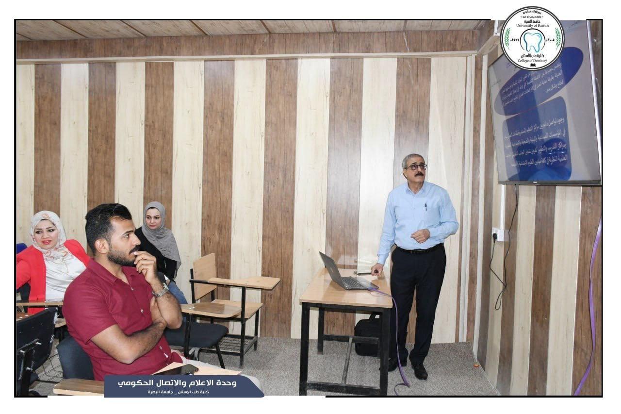 نظمت كلية طب الاسنان في جامعة البصرة محاضرة علمية بخصوص التعليم المستمر ومهامه واهدافه القاها المدرس الدكتور سعيد كاظم النور .