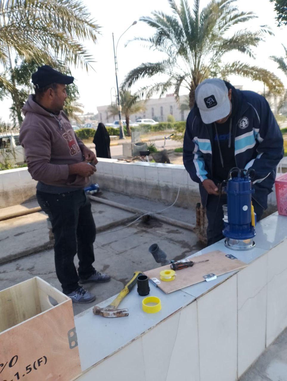 وقال مدير قسم شؤون الديوان المهندس محمود جعفر (شملت الأعمال ربط الغطاسات الخاصة بالنافورة وإعادة تأهيلها لضمان تشغيلها بكفاءة أعلى. كما تم تنظيف حوض الماء بشكل دقيق للتخلص من الترسبات والشوائب التي قد تؤثر على جودة المياه، إلى جانب إصلاح الأنابيب المتضررة واستبدال التالفة منها).