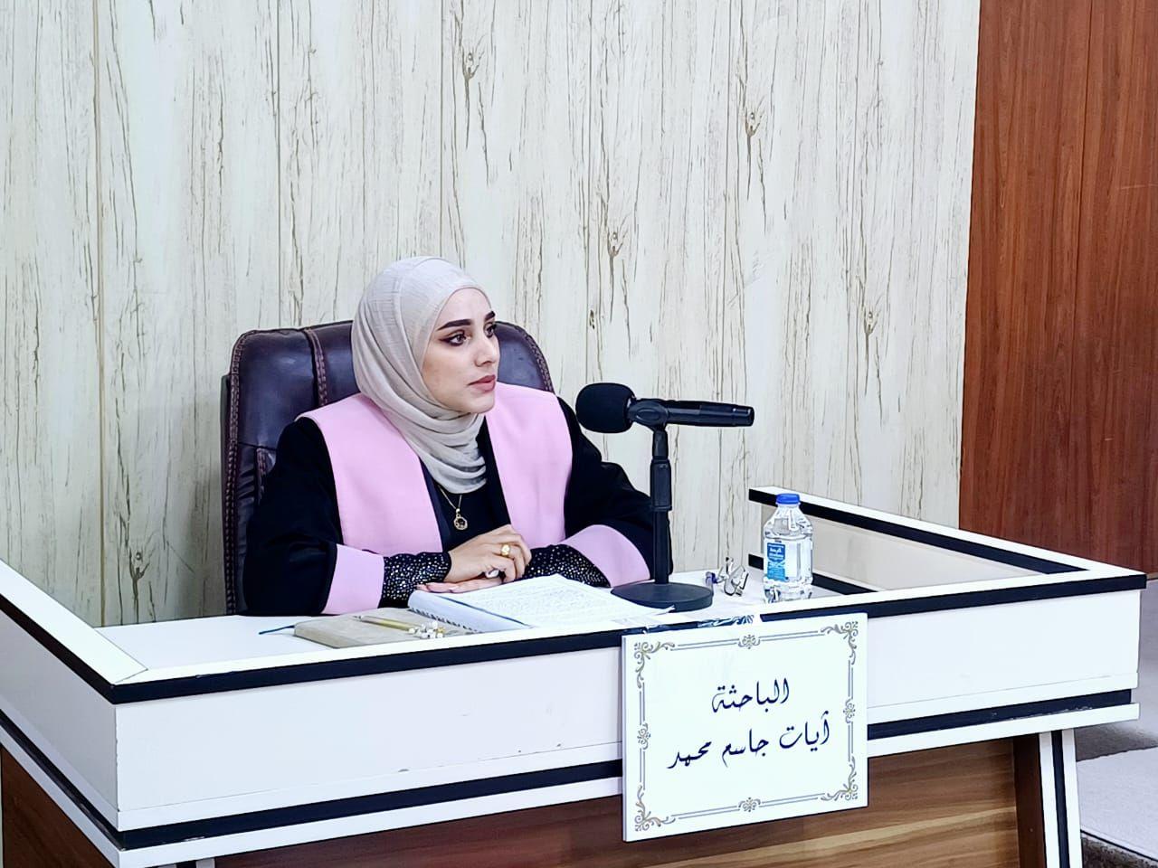 وتهدف الرسالة التي قدمتها الطالبة ايات جاسم محمد الى مقاربة التمثيل السردي بالقصة القصيرة في الخليج العربي .