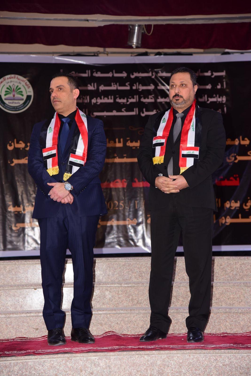 اقامت كلية التربية للعلوم الانسانية في جامعة البصرة حفلاً تأبينياً بالذكرى الخامسة لاستشهاد قادة النصر بحضور رئيس الجامعة الدكتور مهند جواد كاظم ومساعديه للشؤون العلمية والإدارية وعدد من الشخصيات الرسمية والاكاديمية.