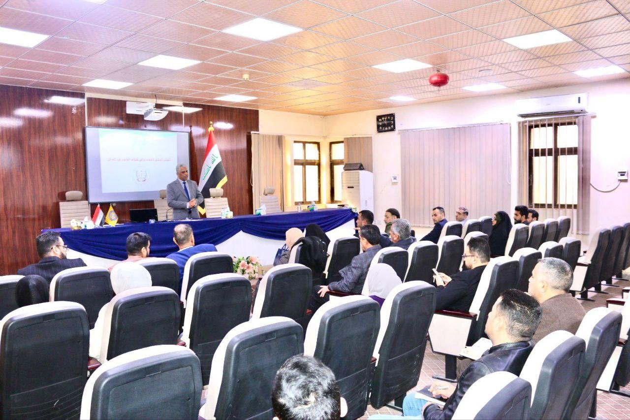 وتضمنت الورشة محاضرة قدمها عميد الكلية الدكتور عقيل فاضل الدهان بين خلالها اهم الشروط الواجب توافرها للحصول على الاعتمادية فضلا عن اهمية اعتماد الكليات في المجلس الوطني لاعتماد برامج كليات القانون.