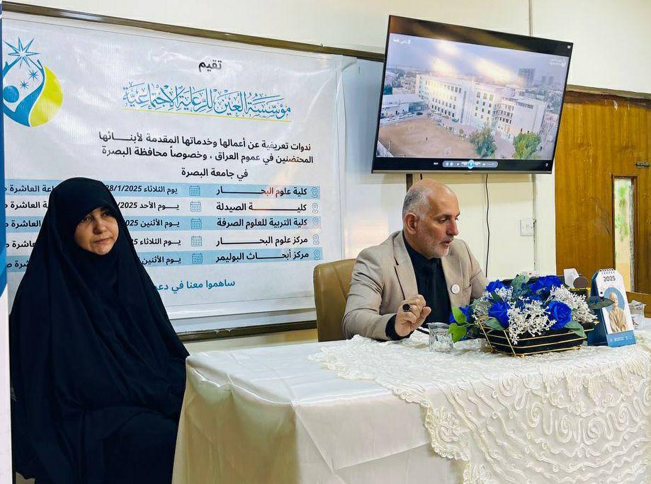 نظّمت كلية علوم البحار في جامعة البصرة ندوة تعريفية عن أعمال وخدمات مؤسسة العين للرعاية الاجتماعية.