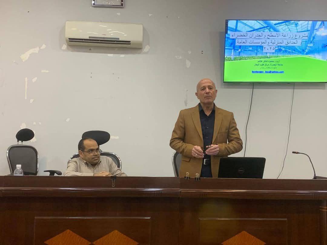 شارك التدريسي في مركز علوم البحار بجامعة البصرة الدكتور محمود شاكر هاشم في الندوة العلمية (( مشروع زراعة الأسطح والجدران الخضراء والحدائق المنزلية والمؤسسات العامة )) التي نظمها مركز التدريب