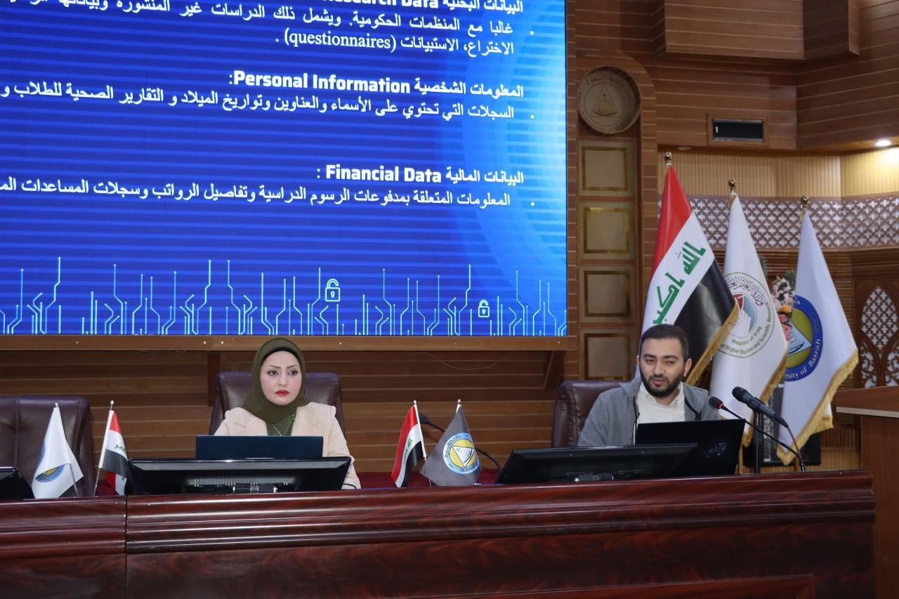 وتناولت الورشة طرق حماية البيانات الاكاديمية والبحوث الخاصة بالتدريسيين من السرقة والعبث وذلك بعرض احدث التقنيات والممارسات المتبعة في الجامعات العالمية لتطبيق هذه الخصوصية.