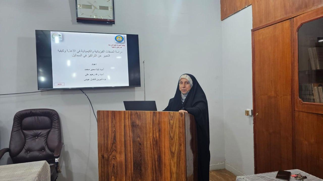 نظمت كلية الزراعة في جامعة البصرة ورشة عمل لطلبة الدراسات العليا والاولية عن كيفية التعبير عن التراكيز في المحاليل ودراسة الصفات الكيميائية والفيزيائية للأغذية