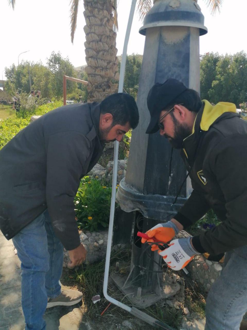 باشر قسم شؤون الديوان بجامعة البصرة أعمال صيانة أعمدة الإنارة في موقع باب الزبير.