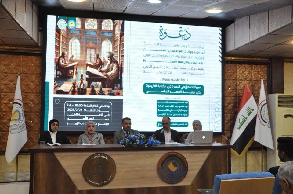 نظم مركز دراسات البصرة والخليج العربي ندوة علمية عن إسهامات مؤرخي البصرة في الكتابة التاريخية حتى نهاية العصر العباسي.