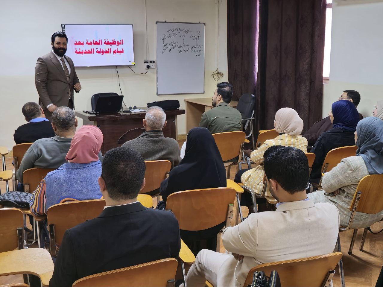 وتضمنت الدورة التي قدمها التدريسي سجاد صباح أدهم، تناولًا لمفهوم الوظيفة العامة وتطورها التاريخي، إضافةً إلى تعريف الموظف العام وبيان حقوقه وواجباته، كما استعرض مفهوم المخالفة التأديبية والعقوبات المترتبة عليها.