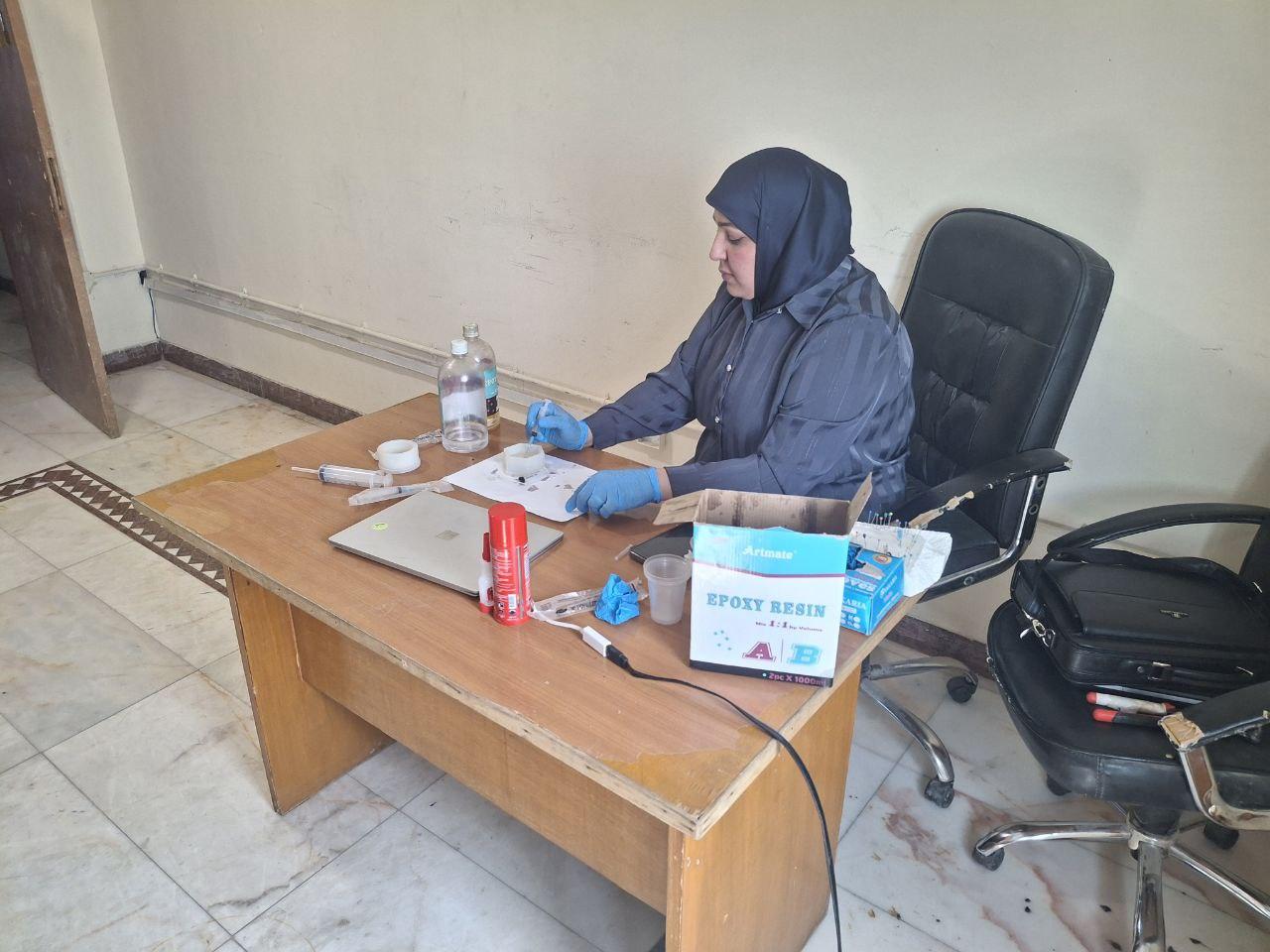 تضمنت الورشة التي قدّمتها المحاضرة سها عبد الرحيم ياسر، شرحاً نظرياً مفصلًا عن تقنية التصليب باستخدام مادة الإيبوكسي والمادة المصلبة، وأهميتها في حفظ العينات والأجسام البيولوجية، مع توضيح مزاياها الكيميائية وخصائصها الفيزيائية.
