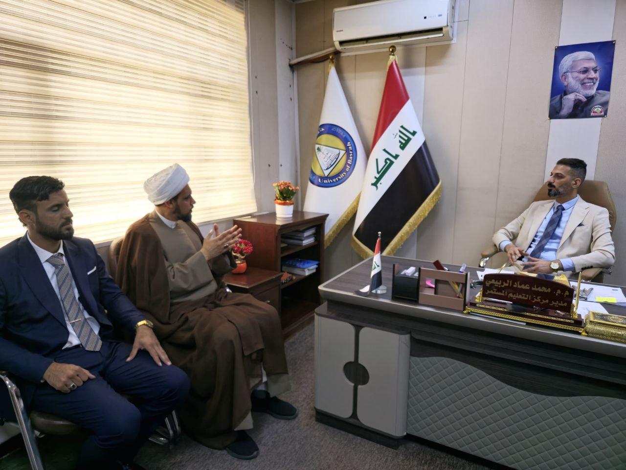 بحث مركز التطوير والتعليم المستمر في جامعة البصرة التعاون المشترك مع الشيخ علي التميمي والوفد المرافق له من هيئة الحشد الشعبي في محافظة البصرة، بشأن إمكانية التعاون المشترك وإشراك منتسبي الحشد الشعبي في الدورات التدريبية التي ينظمها المركز.