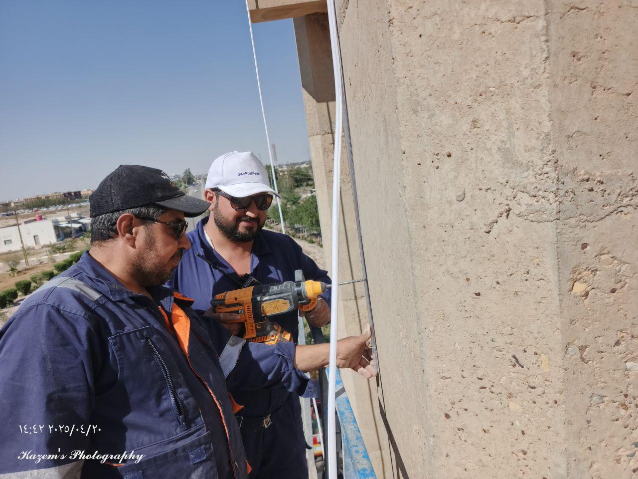 ملاكات جامعة البصرة تنجز أعمال الإنارة للشعارات الجامعية
