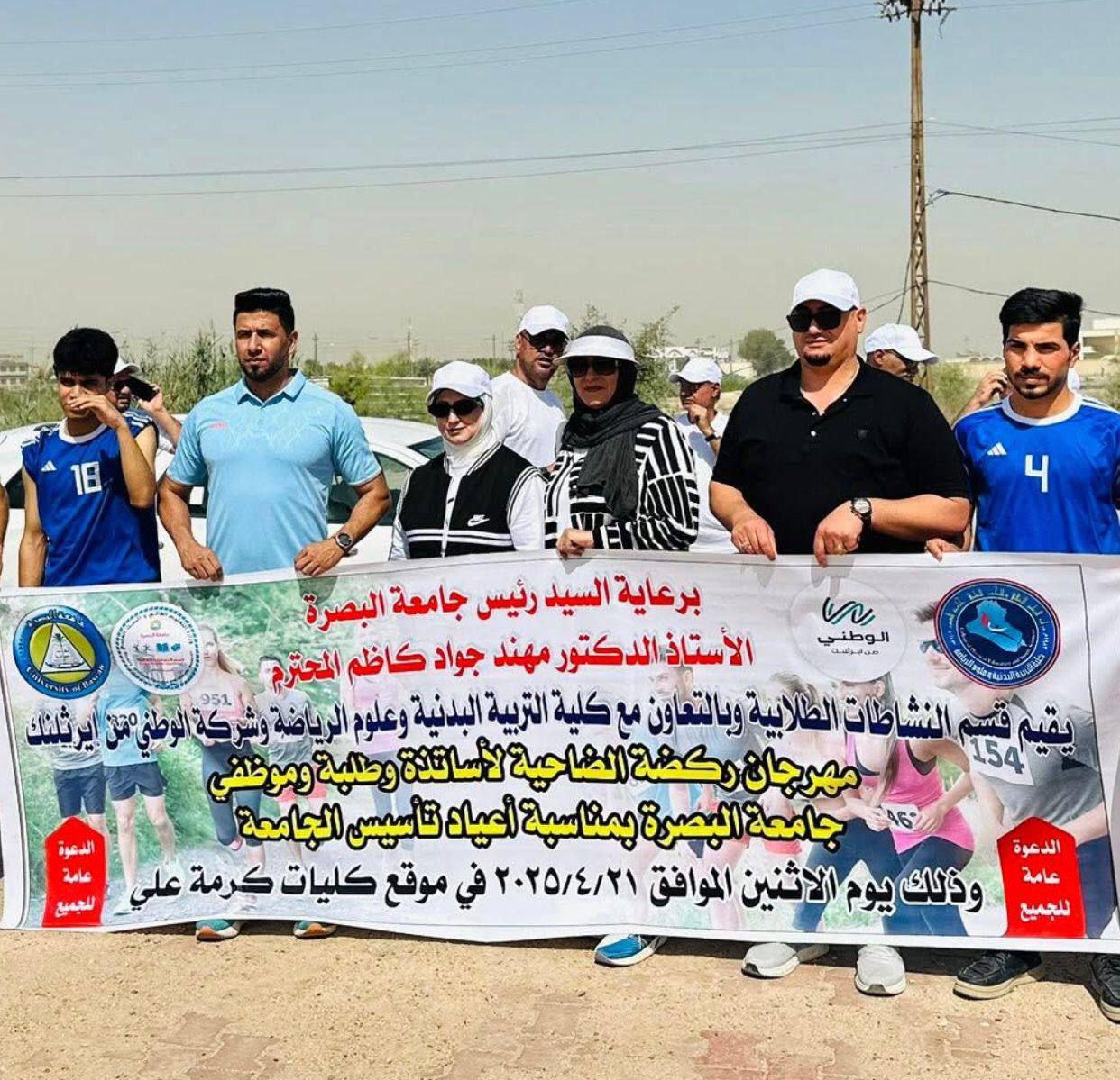 نظم قسم النشاطات الطلابية في جامعة البصرة بالتعاون مع كلية التربية البدنية وعلوم الرياضة مسابقة ركضة الضاحية وألعاب القوى، وذلك بمناسبة يوم الجامعة وبرعاية السيد رئيس الجامعة.