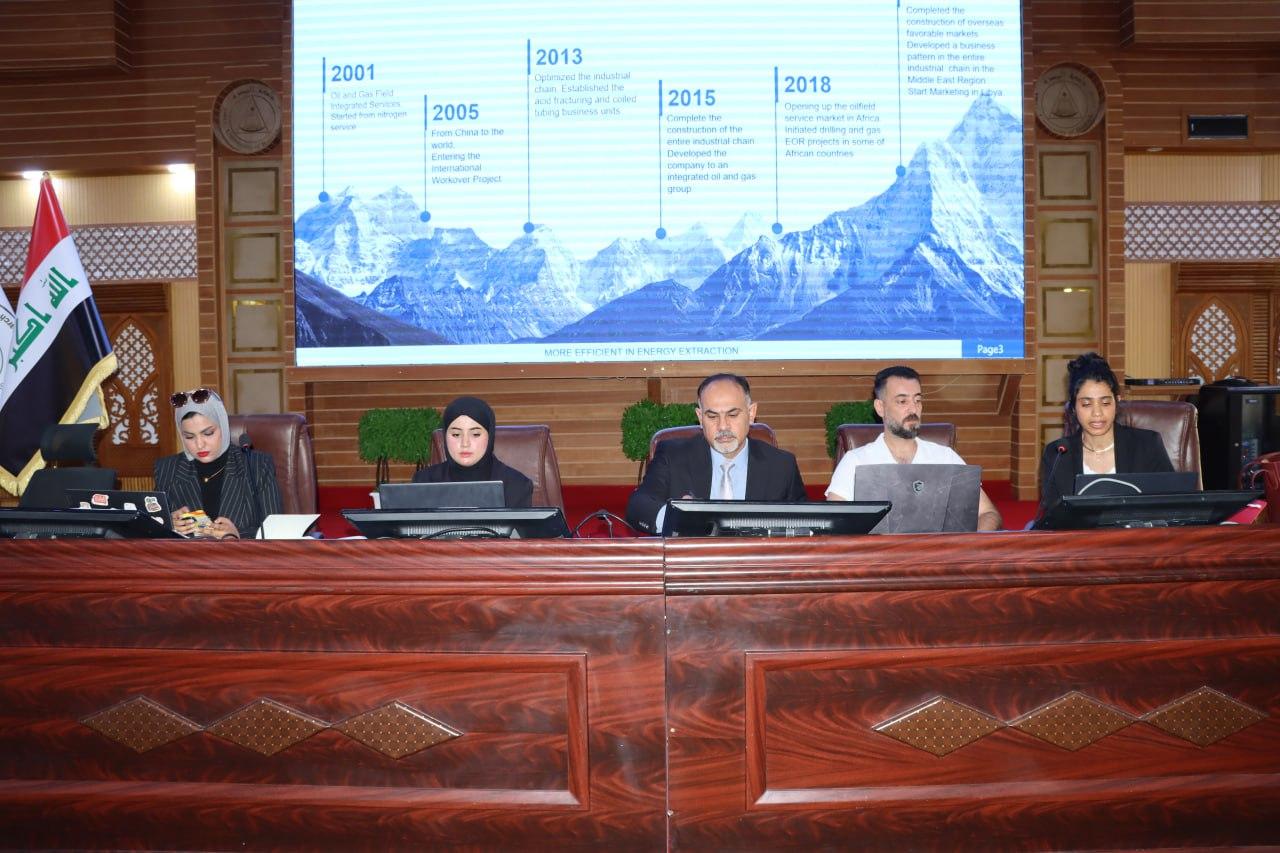بتنسيق مشترك بين قسم الشؤون العلمية وشعبة التأهيل والتوظيف في جامعة البصرة مع شركة كيروي النفطية الصينية التقى مديرها التنفيذي السيد وين جيان شي بالخريجين الاوائل بحضور مدير قسم الشؤون الادارية والمالية الدكتور علي زاجي.