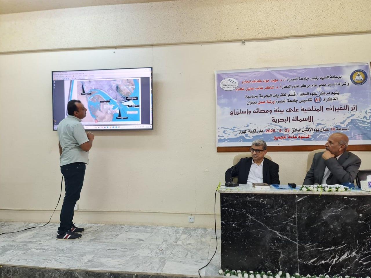 نظم مركز علوم البحار في جامعة البصرة ورشة عمل عن أثر التغيرات المناخية على بيئة ومصائد واستزراع الاسماك البحرية .