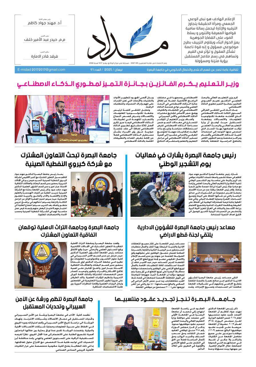 صدر عن قسم الاعلام والاتصال الحكومي في رئاسة جامعة البصرة العدد(91) من صحيفة مداد.
