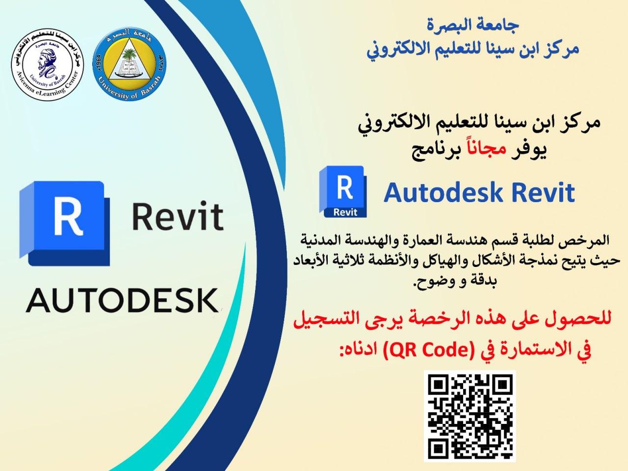 صرح مدير مركز ابن سينا للتعليم الالكتروني بجامعة البصرة الدكتور عدي بشير عيسى عن توفير برنامج ( Autodesk Revit ) للطلبة مجانا ً .