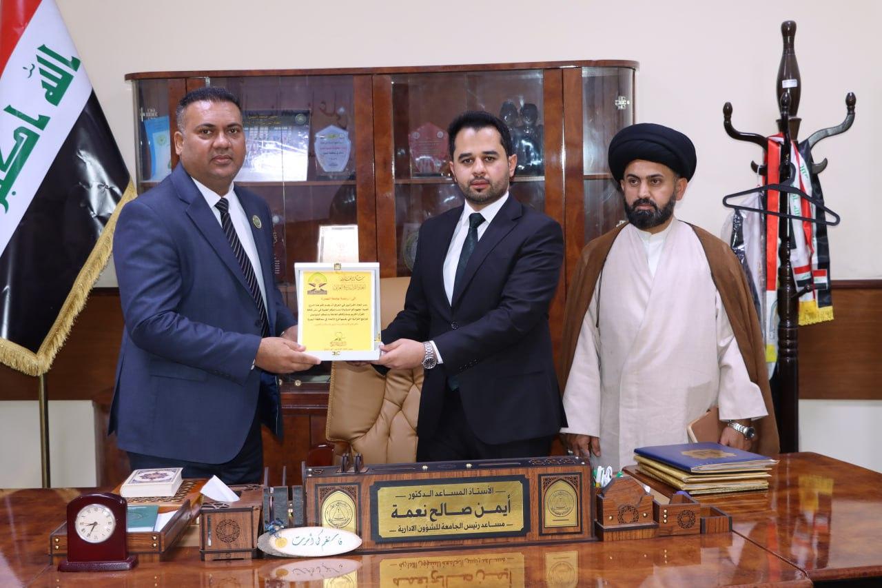 استقبل مساعد رئيس جامعة البصرة للشؤون الادارية الدكتور ايمن صالح نعمة وفداً من اتحاد القرآنيين في العراق.