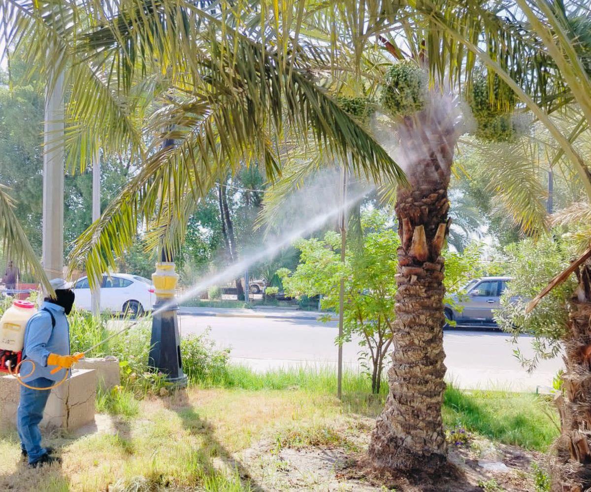 وقال مدير قسم شؤون الديوان المهندس محمود جعفر جاسم: إن فرق العمل باشرت برش المبيدات الحشرية الخاصة بمكافحة العنكبوت باستخدام المواعيد الوقائية المنتظمة المتبعة سنويًا، ووفق برنامج مدروس يأخذ بعين الاعتبار الظروف البيئية ومدى انتشار الإصابة.